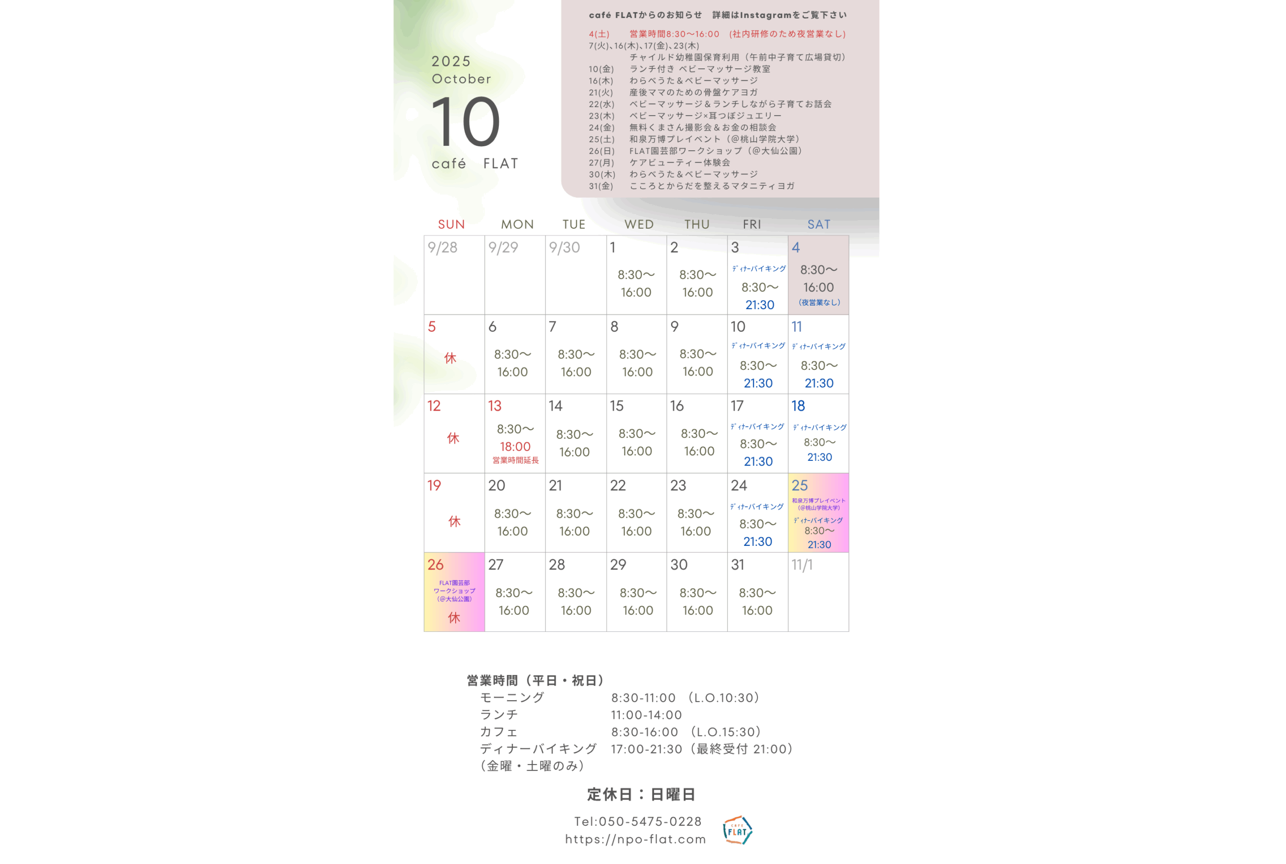 🌟10/4(土)は8:30~16:00まで。社内研修のため夜営業はありません。何卒ご了承ください。