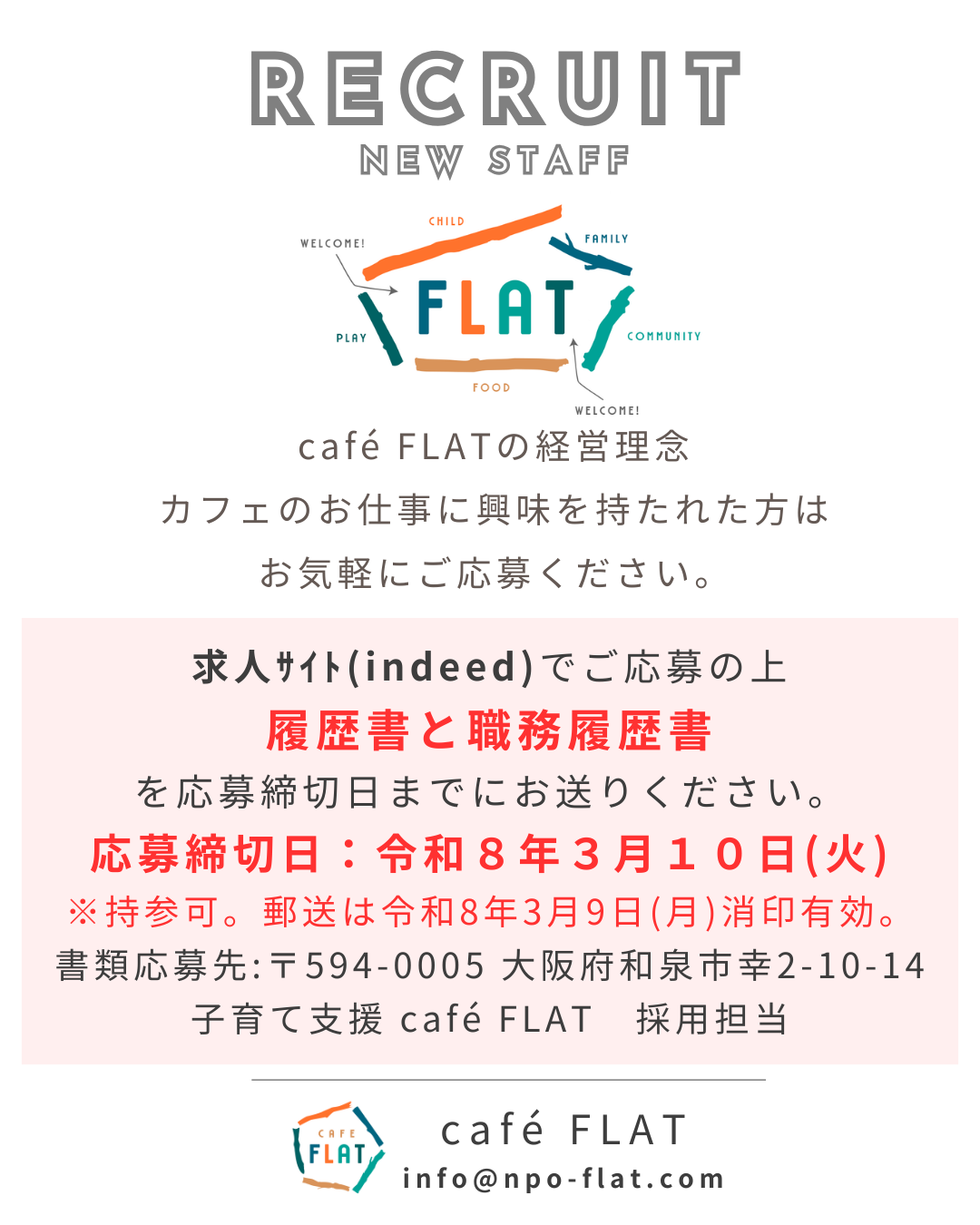 スタッフ追加募集!3/10火まで!