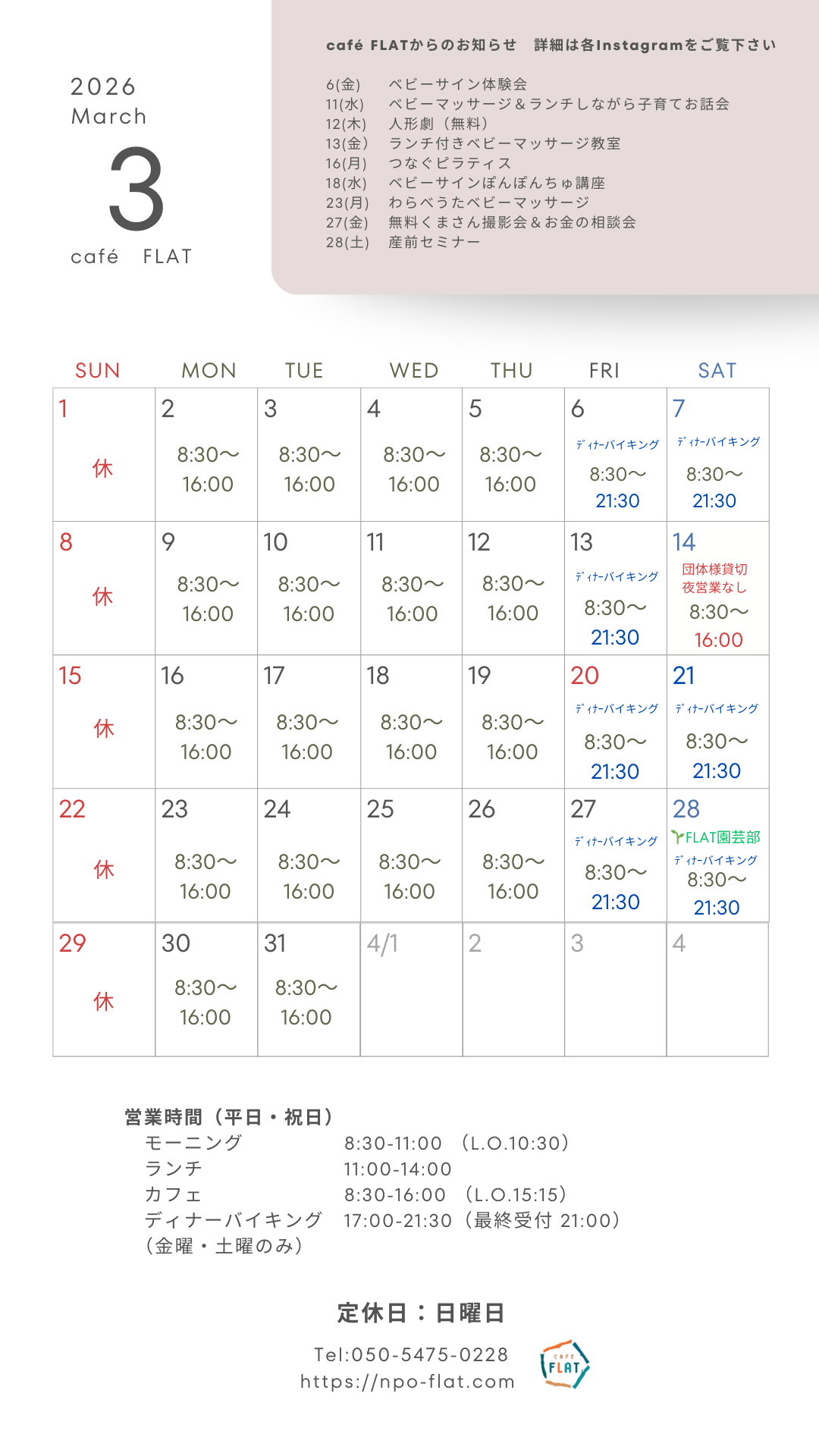 🍻3/14(土)夜は、団体様貸切営業のため、ディナーバイキングはいたしません。