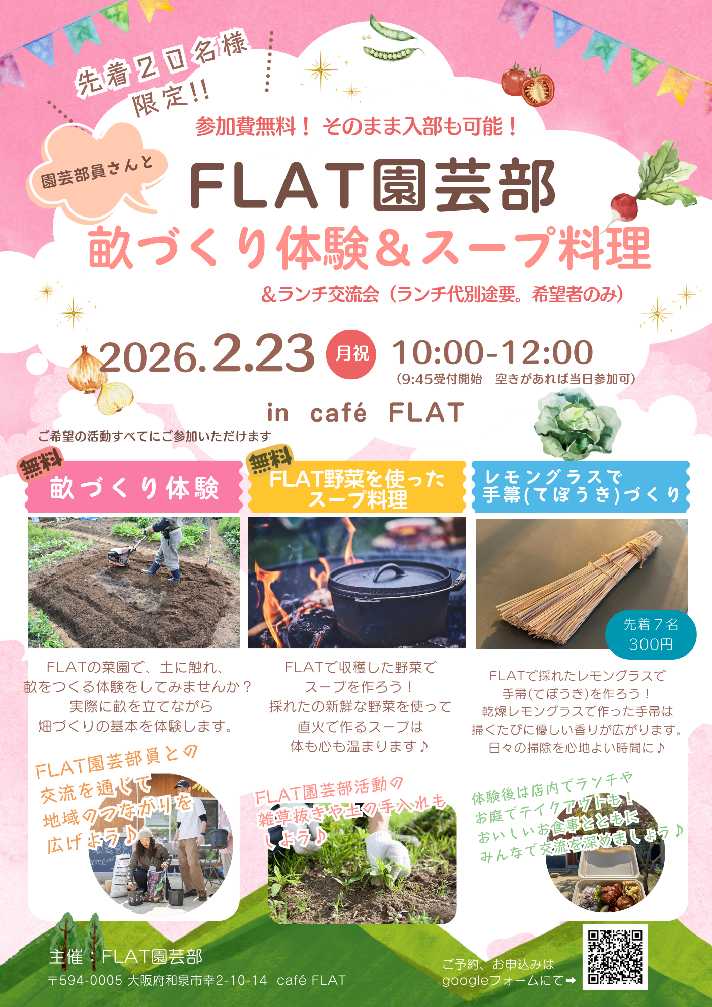 体験イベントを通して、FLAT園芸部員との交流を深めながら、地域とのつながりを広げましょう♪
